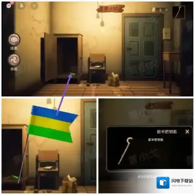 4.打开立柜,获得前半把钥匙;查看立柜里的旗子,告诉女主旗子的颜色