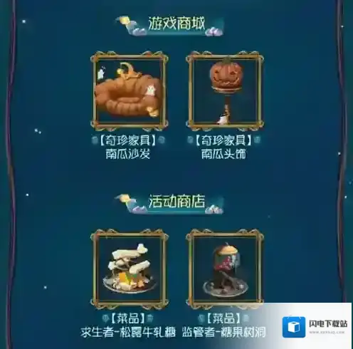 除了全新的活动奖励,游戏商城上新家具–奇珍家具南瓜沙发、奇珍家具南瓜头饰,活动商店上新菜品–菜品求生者-松露牛轧糖、菜品监管者-糖果树洞,期待访客们的采购!