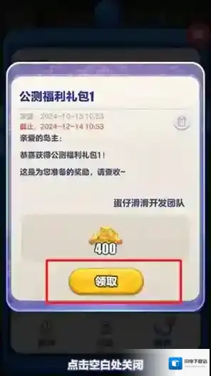 6、在这里就可以领取刚刚使用的兑换码礼包了,400个金币道具。