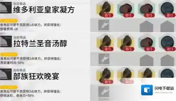 粮食(能量液)基本是不缺的,可以适当合成料理。特殊波次出现前,注意保证自己主力干员高体力,可以多次迎战,合成料理比较实用的是减部署费用(决战给快活吃),有资源也可以做几个减速鼓风机。