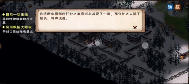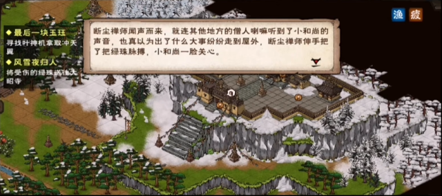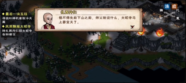 大雪山-大昭寺(16,4):触发剧情,尸体,查验,对话扎西丹仁,查看飞鸽传书