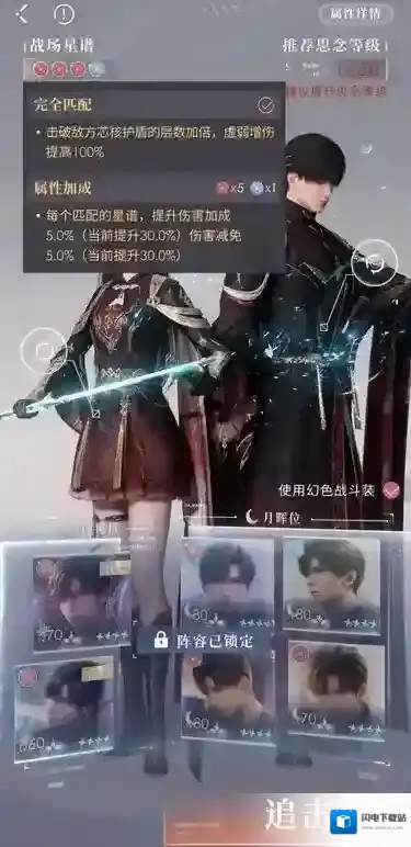 开局连着两个有核怪进场即破盾,无缝共鸣,双爆作用较小,提高虚弱让前面打得更快一点,更好到后面石头人。