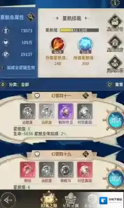 星航中有许多不同的航线,消耗对应的英灵既可激活对应航线,激活后可以继续升星,星航加成对全体舞姬生效,