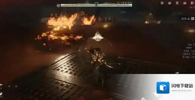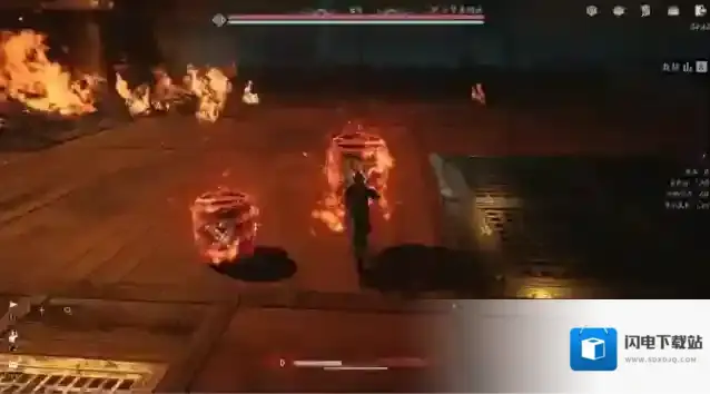 ⑤燃烧之刃:当首领的血量小于20%的时候,会读条燃烧之刃,接下来的伤害将附带火焰伤害,攻击力提高,并且攻击会引爆炸药桶。