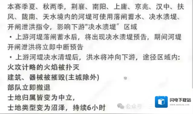 全新引入堤坝玩法,可以产生水淹七军的效果。