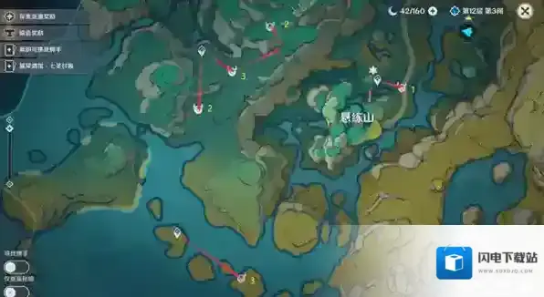 ②在悬练山左上锚点南方2只,东南方3只,东北方2只。