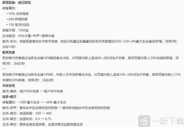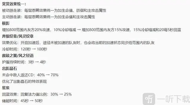 辅助装恩赐效果调整:被动装恩赐改为加攻击、血量和双抗,主动装恩赐改为加攻击和血量。