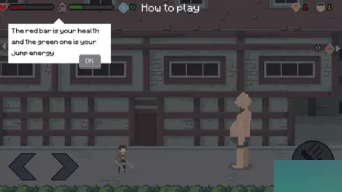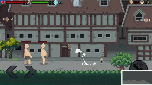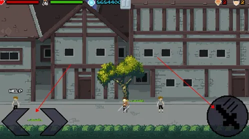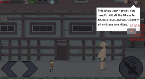 8、左边的按钮可以控制角色左右移动,右边的按钮可以控制角色进行攻击;