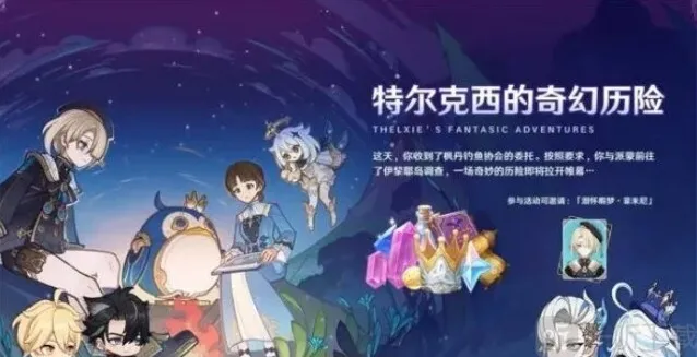 主题活动:特尔克西的奇幻历险,包括4个小玩法:参寻荣耀追游录(寻游挑战)、主板调试问题集(连线桌游)、肃清邪物反击战(战斗),以及收集特尔克西徽章(最多100枚),总计可以获得1000原石,并会赠送4星角色菲米尼。