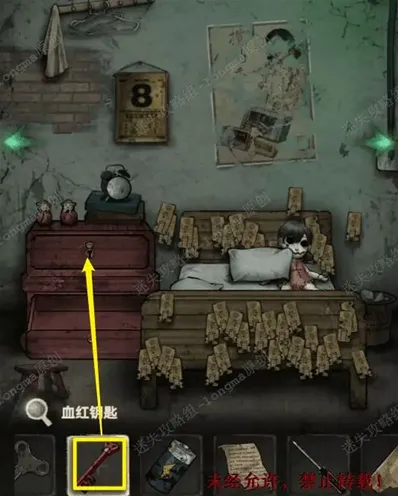 24.来到床边,使用暗红钥匙打开左边柜子上面的抽屉,得到奖状碎片3。