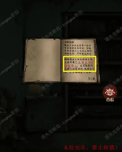 27.将日记页2放入日记中,记住上面的线索:木水木金土(后面其他章节能用到)。