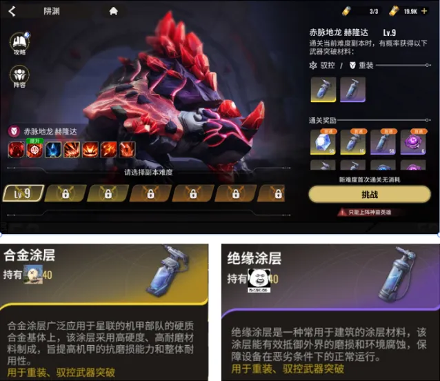装备、英雄、英雄碎片获取:挑战