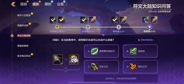 1、在当前赛季中,按照图示合成可以合成什么装备?
