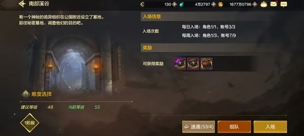 南部溪谷在达到48级时开启,可获得的奖励为深渊派对邀请函和深渊派对远征函,为刷深渊所必须的材料,所以小编建议各位小伙伴将角色每周三次奖励次数和账号每周九次奖励次数全部刷掉。
