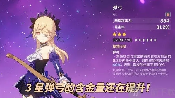 以赛索斯作为参考,他的主要输出皆来自于‘重击伤害’,包括元素爆发后获得的普攻瞑弦矢也是视作重击。此时你就会发现,数值策划最恨的3星武器之一「弹弓」强势登场!