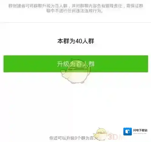 10、必须是群主建立群的人才有权利升级,解散一个群之后那个群如果升级过就可以再次使用,依然可以是三次。