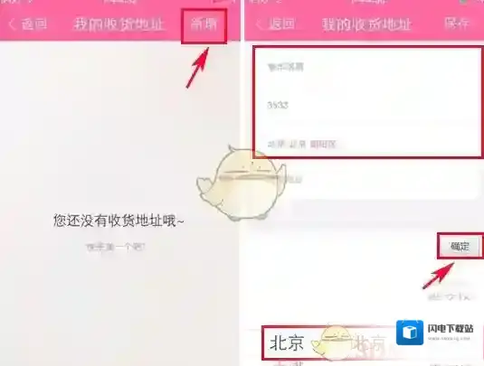 2)点击右上方新增,然后填写收货人姓名、手机号码点击所在地区,弹出所以地区,选择你所收货地区(例:北京朝阳区),点击确定。(如下图)