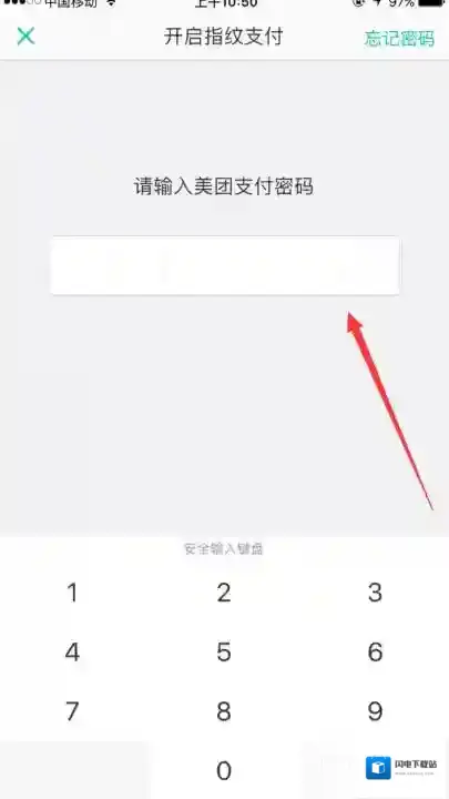 第五步,为了你的帐号安全,因此要验证一次美团支付密码正确的输入。当你的指纹支付中变成绿色时,便说明你已成功开启指纹支付方式。如图所示: