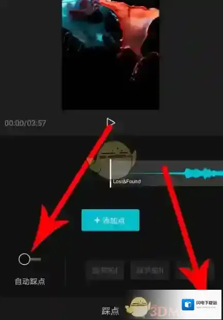 5、打开卡点的列表之后,大家还需要选择左侧的“自动卡点”按钮(如下所示),这样就能将每次卡点的节奏用黄点标注出来。