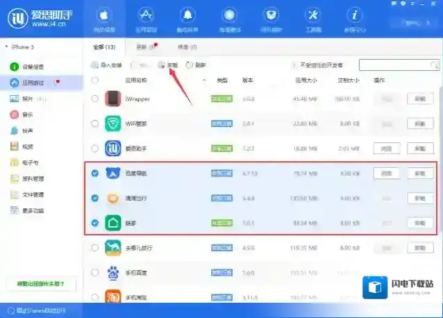 在应用游戏列表中找到并选中“您不常用”的应用程序,点操作栏中的“卸载”按钮来卸载应用即可释放设备存储空间