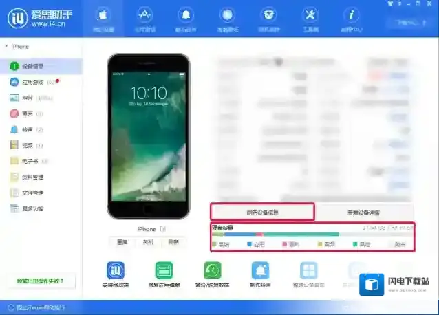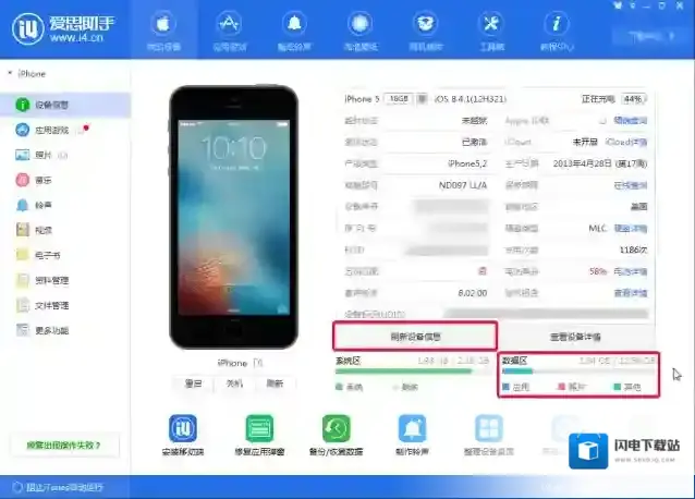 请在“设备信息”界面点击“刷新设备信息”按钮来刷新设备信息,并查看系统区和数据区剩余容量是否充足。