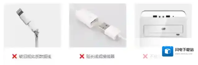 请不要使用破旧或者劣质数据线,建议您使用优质或原装数据线。不稳定的USB口包括:前置USB接口、USB转接线、USB延长线、USB扩展器、供电不足的笔记本USB接口、USB接口进灰、USB接口氧化、USB接口松动。 若存在以上情况,建议您换个稳定的USB接口或者把苹果数据线直接插到台式电脑的后置USB接口,若问题依旧,请更换其他电脑再试。