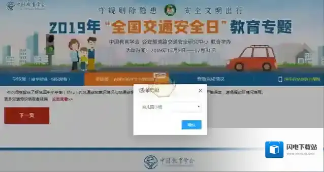1、复制上方梦马下载库小编提供的“2019全国交通安全日专题”网址,进入网站后点击右上角的登录,会弹出年级选择项,根据你的当前年级进行选择后,点击确认。