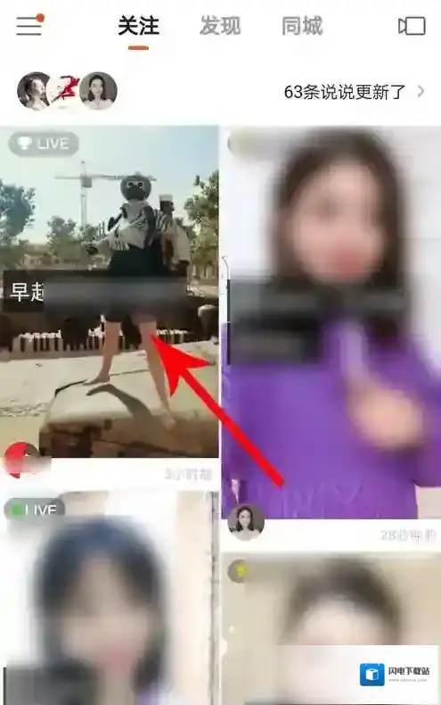 2、打开手机中的“快手APP”,打开快手以后,系统会直接进入关注界面,然后点击直播间“封面”。