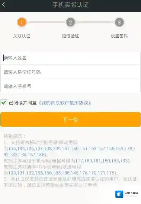 4、之后需要输入自己的手机号和身份证信息,进行了实名认证后就可以成功注册我的南京app账号了。