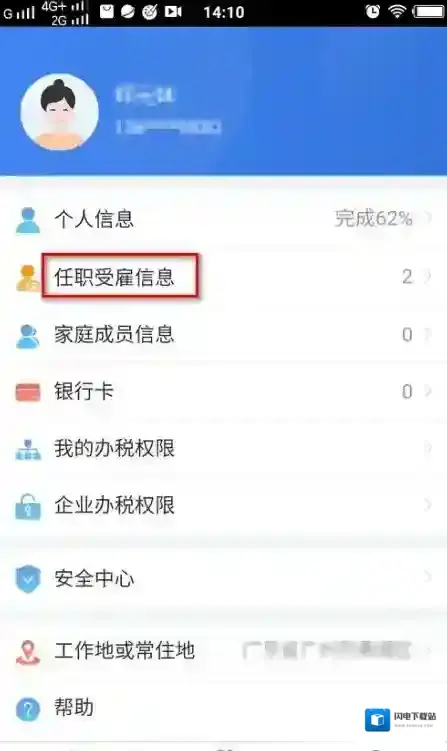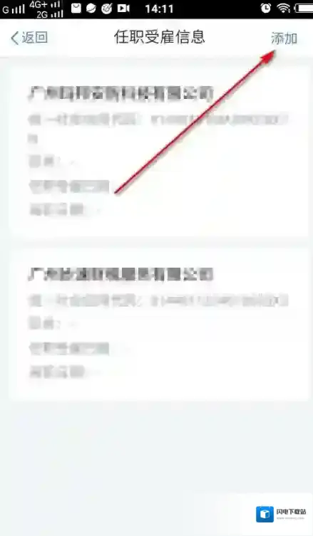 6、还有另外一种方法,直接点击APP的个人中心,再点击任职受雇信息,页面跳转回,再点击添加。