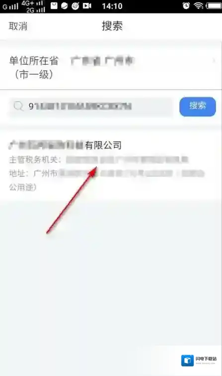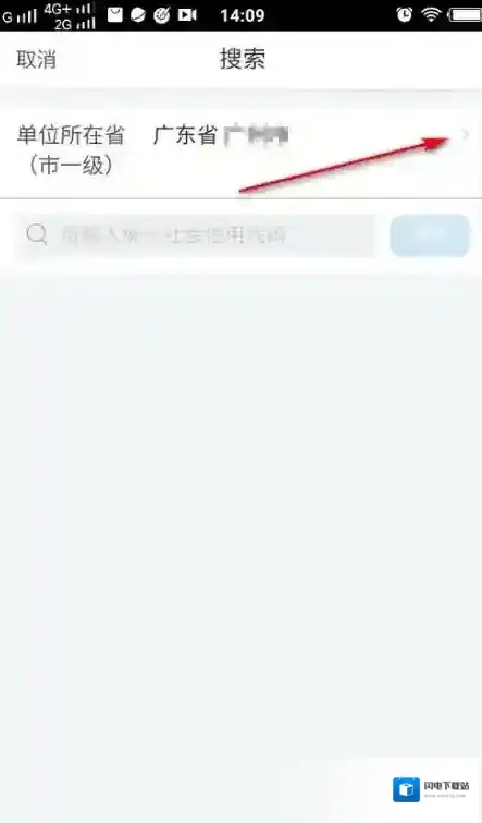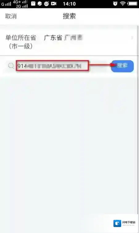 3、选择单位所在省市后,输入单位的信用代码号,点击搜索。