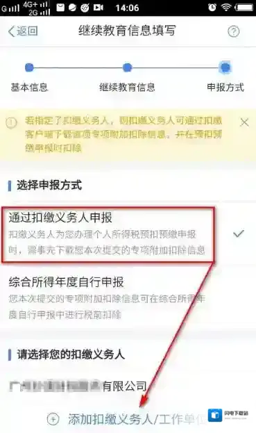 1、如下图所示,填写完个税扣除内容后,点击扣缴义百务人申报,这时候会弹出任职公司的信息,如果没有找到任职的公司,点击添加义务人/工作单位。