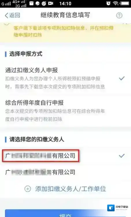 5、勾选此任职单位后,系统会自动跳回到扣缴义务人的选择界面,点击刚刚添加的单位,最后点击提交就可以了。