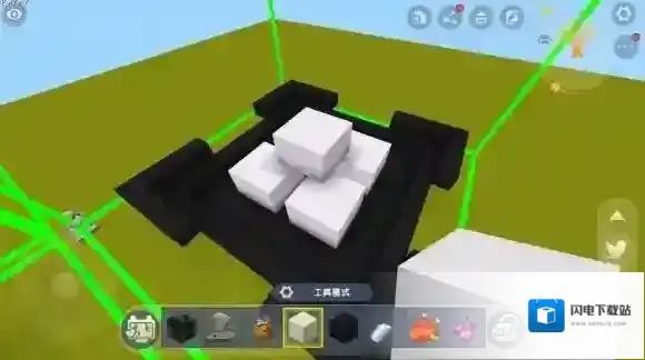 2.首先,然后把模型工作台放出来。然后拿出黑色硬沙块在中间放个11×11的正方形。