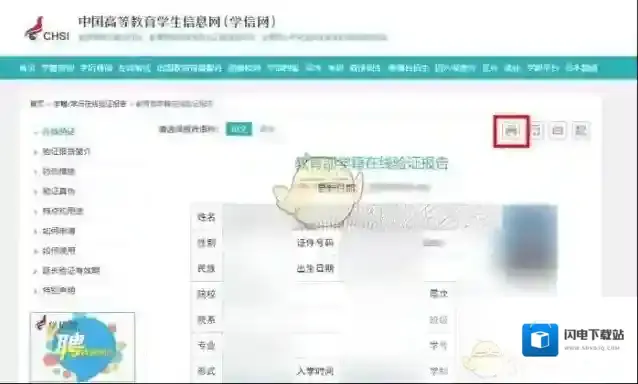 8、最后可以看到我们的学籍信息,点击上方的打印按钮,即可打印学历认证。