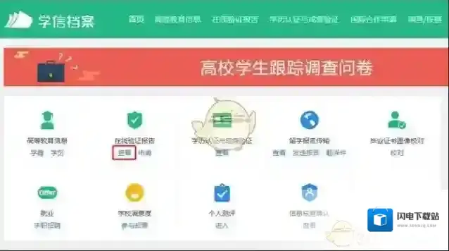 5、登录成功之后,进入学信档案首页,在首页选择在线验证报告-查看;