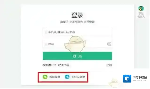 4、在登录界面,如果需要使用账户进行登录,直接输入账户和密码点击登录即可;如果需要使用微信、支付宝进行登录,则选择微信/支付宝进行登录;