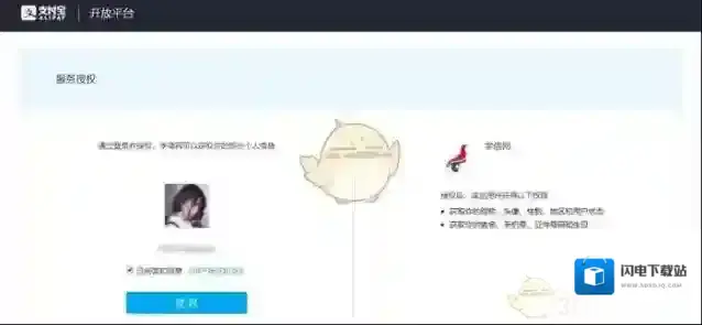 6.2、然后使用手机支付宝扫一扫功能扫描二维码,在手机上确认登录后进入授权界面;