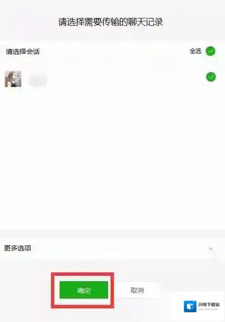 3、接下来,可选全选聊天记录,或选择个别好友的聊天记录,点击“确定”;
