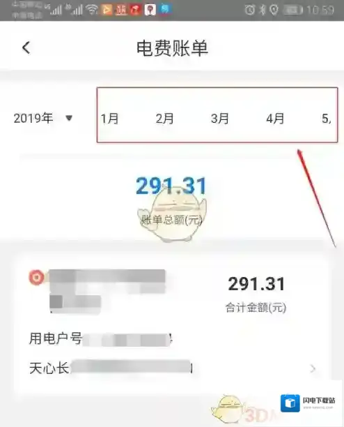 2、默认显示为当月电费使用情况,可以点击年份进行切换;
