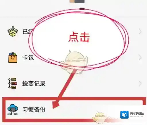 4、登录成功后,在我的界面,能看到有个“习惯备份”,点击习惯备份选项。