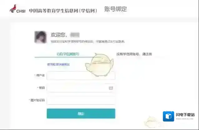 5、授权之后,进入绑定账户界面,如果有账户,选择已有学信网账户进行绑定,如果没有账户,则需要选择没有学信网账户,请注册进行账户注册;