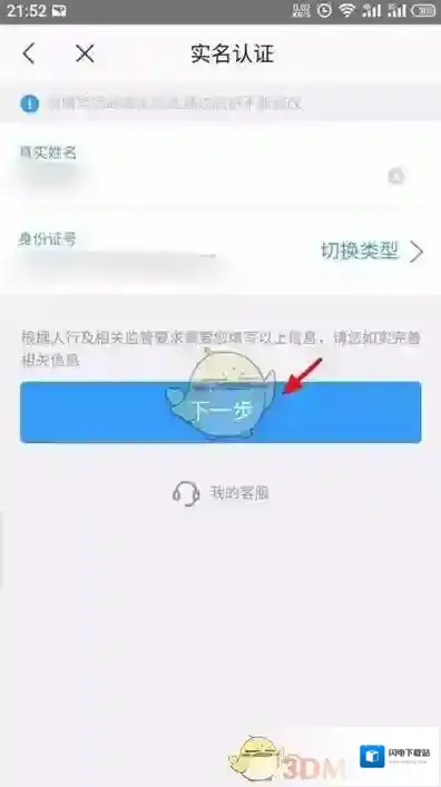 5、最后我们在实名认证页面,填写自己的身份信息,点击下一步;