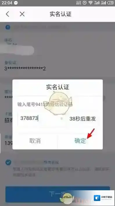 7、使用手机号码接收短信验证码,点击确定完成实名认证;