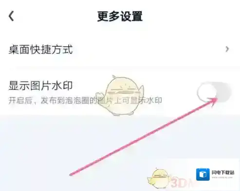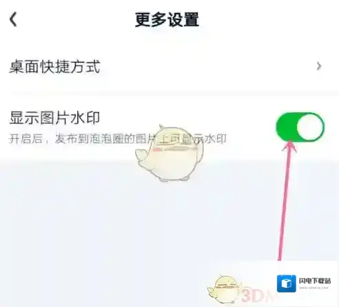 3、切换到更多设置的页面板,显示图片水印选择“开关”按钮