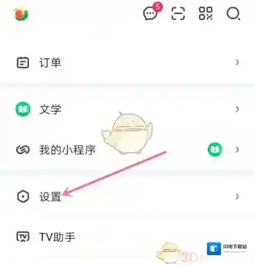 1、在爱奇艺的页面选择“我的”,然后在我的页面选择“设置”选项