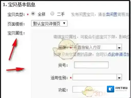 3、进入宝贝基本信息界面,可以看到宝贝属性,根据要求填写信息,带有*号的是必填信息;