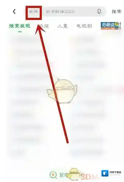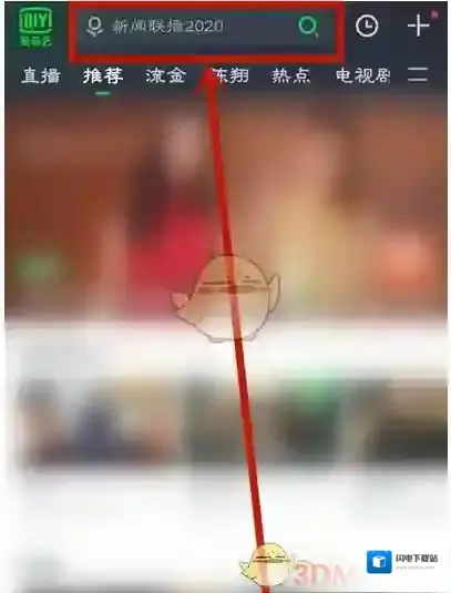 1、爱奇艺可以通过图搜或词搜的方法,以图搜为例,点击搜索框,