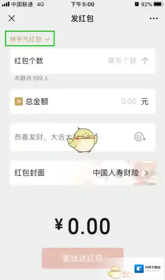 2、进入发红包界面,可以看到上面多了个选项(灰度测试中),点击