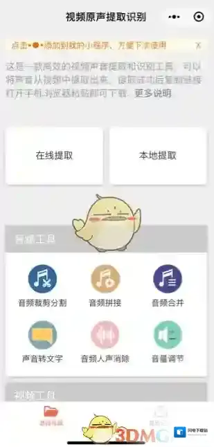 5、进入视频原声提取识别,点击“在线提取”;